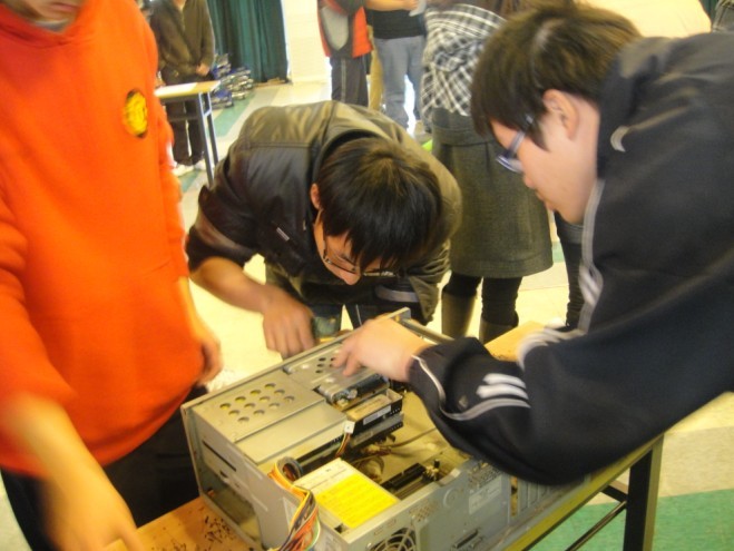 在科技展台前,同学们都津津有味地听着解说,看着示范,而电脑组展比赛的同学们更是全神贯注,有的指挥,有的动手。科技展台让同学们了解平时耳熟能详但并不常见的实物,OM培养着同学们解决问题的能力,电脑组装给同学们更多了解电脑的机会。相信参与这次活动的同学都受益匪浅。