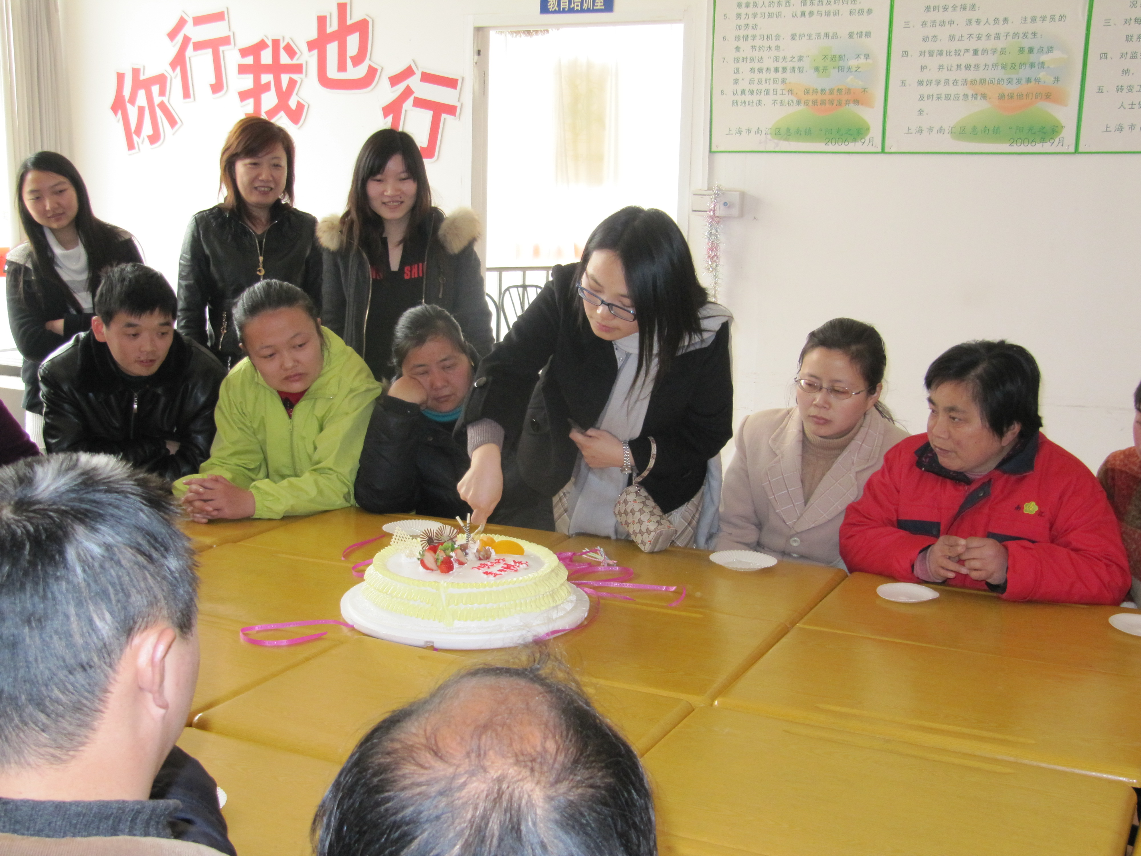 在场的老师及学生为在3月份生日的“阳光之家”成员举行了一场特别的生日会。在一首温暖的生日歌中开始了一个美好的下午。现场活动气氛活跃,有的志愿者为他们讲故事,有的则与他们一起下五子棋,有的则和他们一起唱歌,场面十分温馨。