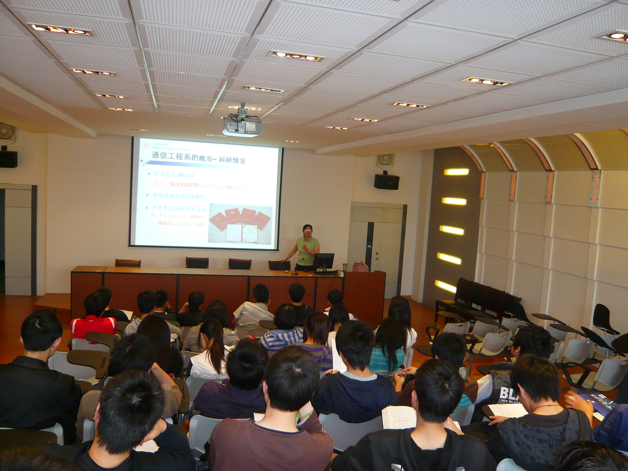 第三教工支部由通信和电科两个专业的党员教师组成,支部书记、通信专业陈琳老师以及电科专业叶波老师分别为两个专业的学生做了专业导航讲座,讲座主要针对大一学生,两位老师以通俗易懂的语言为他们讲解了专业背景和特点、专业学习中的重点和难点以及专业的社会前景等,让同学们对自己定位发展有了较为明确的认识。