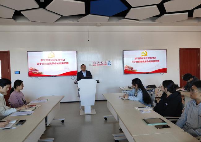 学院思政特聘指导员马克思主义学院巩军伟作题为《学习贯彻习近平总书记关于党的自我革命的重要思想》的讲座。在讲座中,他用深入简出的语言、丰富多样的案例,围绕如何理解以自我革命引领社会革命、为什么要全面从严治党、党的二十大关于全面从严治党的重大部署等内容,作了系统阐释和深入解读。