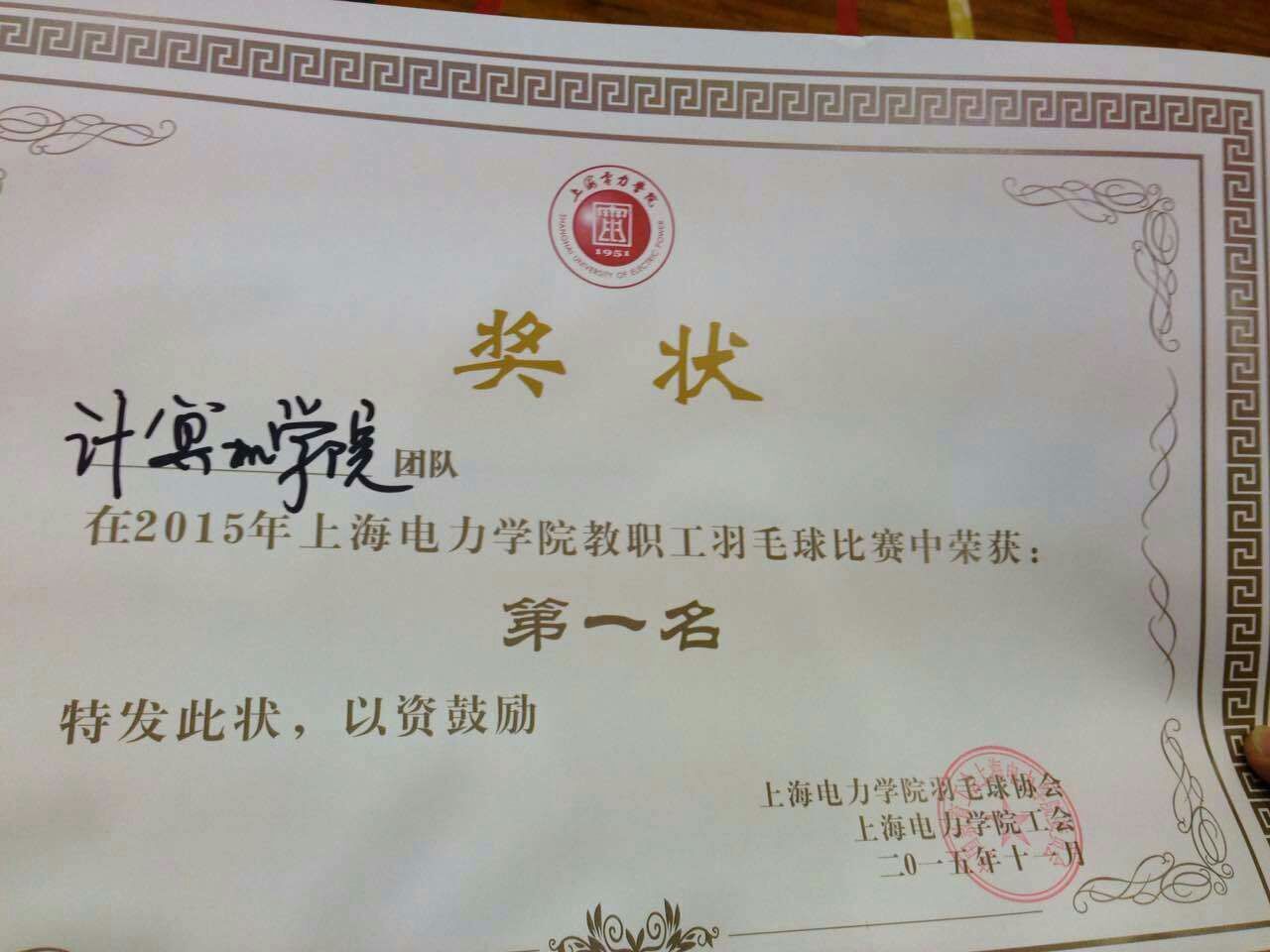 我院教工羽毛球队发挥整体实力,稳扎稳打,互相加油鼓励,先后力克能机学院队、机关3队、数理学院队,一路杀进决赛,决赛对阵去年冠军自动化1队,我院代表队不畏强手、奋勇拼搏,以3:1的总比分首次获得校羽毛球团体赛冠军。校党委副书记、校工会主席李艳玲老师、校工会常务副主席赵玲老师颁发奖状和奖品。