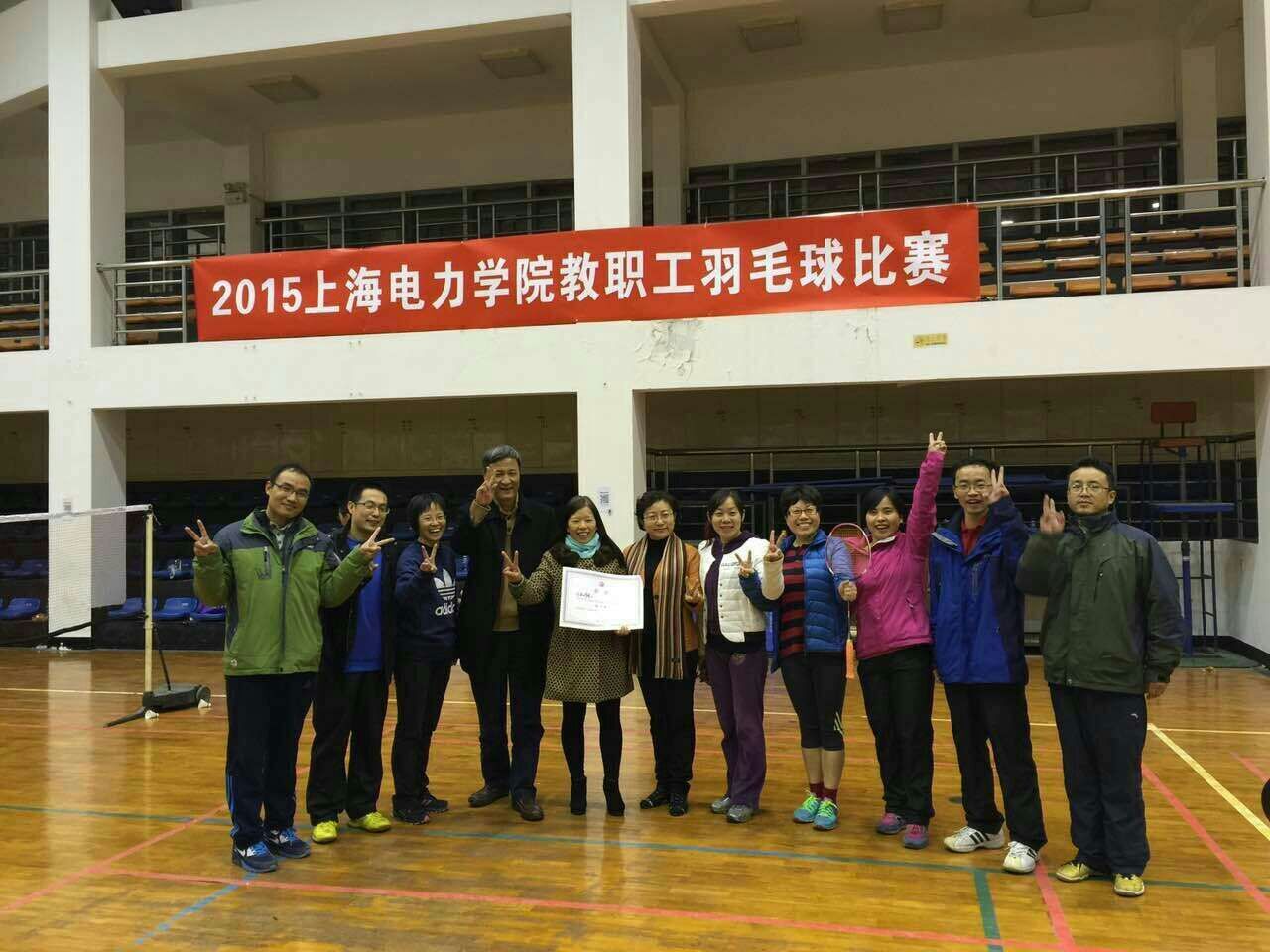 11月27日下午,上海电力学院2015年度教工羽毛球团体赛在平凉校区体育馆举行。我院教工羽毛球队由院党委书记费敏老师任领队,副院长毕忠勤老师、分党委副书记王佳丽老师、刘大明老师、田秀霞老师、薛梅老师、成贵学老师、赵铮老师组队参赛,院长雷景生老师、分工会主席院办公室诸葛老师、唐小岚老师到场做好后勤保障。