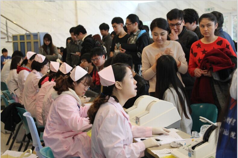 志愿者们一大早来到指定地点做好准备工作,协调配合医生开展献血活动。“有什么不适的话要赶快去医务室,不要逞强”,志愿者在现场叮嘱前来献血的同学。献血的同学按计划来到献血地点,在与工作人员协调之后,同学们按顺序进行了领表登记、血型测定、体检和抽血程序。第三次前来献血的大三同学提醒大家道“早上要吃饭,之后一定要注意休息”。组织这次活动的校医务室肖南老师肯定了我院积极踊跃的态度,指出计算机学院每年重视献血活动,不论组织、协调都准备的很到位,也因此能圆满、超额的完成指标。在场的老师也说“通过这次活动,给大家提供了许多献爱心的机会,传递了青春正能量,践行了雷锋无私精神,更是弘扬了中国青年的无私精神。”献血后,院领导、老师们关心慰问了同学们的身体状况。