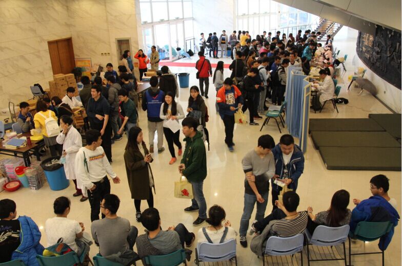 4月6日上午八点半,我院在大礼堂举办了无偿献血公益活动。院党委副书记王佳丽老师和辅导员们来到现场慰问献血的同学们。