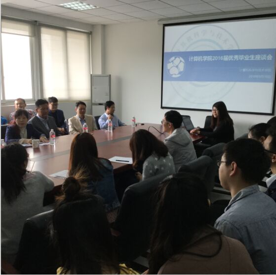 5月10日上午,我院在行政楼二楼会议室举行了2016届优秀毕业生座谈会。院长雷景生、院党委书记费敏、院党委副书记王佳丽、信息安全系主任周林、计算机学院二支部书记刘大明、计算机系副主任张超、辅导员刘佳以及我院优秀毕业生代表参加了本次座谈会。