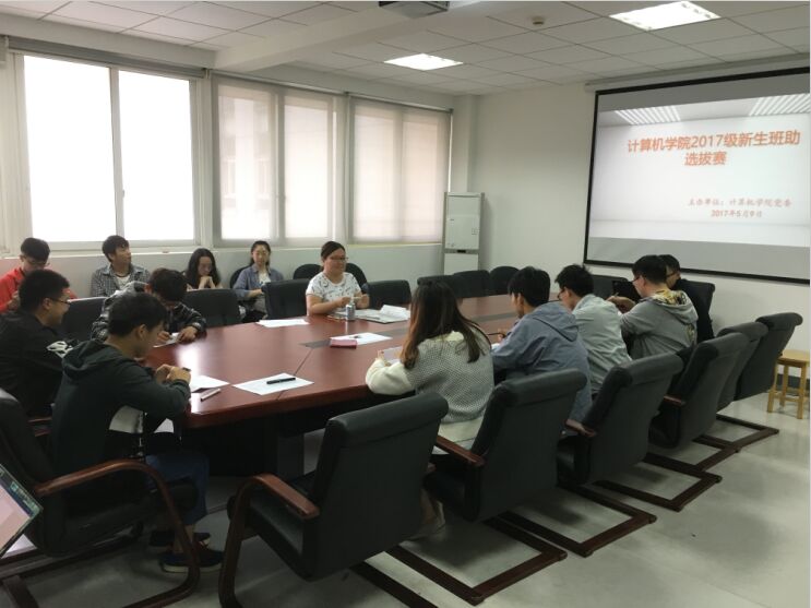 5月9日晚,我院2017级新生班助的选拔工作在学院会议室举行。学院负责思政的吴涵老师、辅导员朱佳老师、院学生会主席刘圣地以及2016级的所有班助担任评委,2015级信安、软件、计算机专业共14名同学参加选拔。