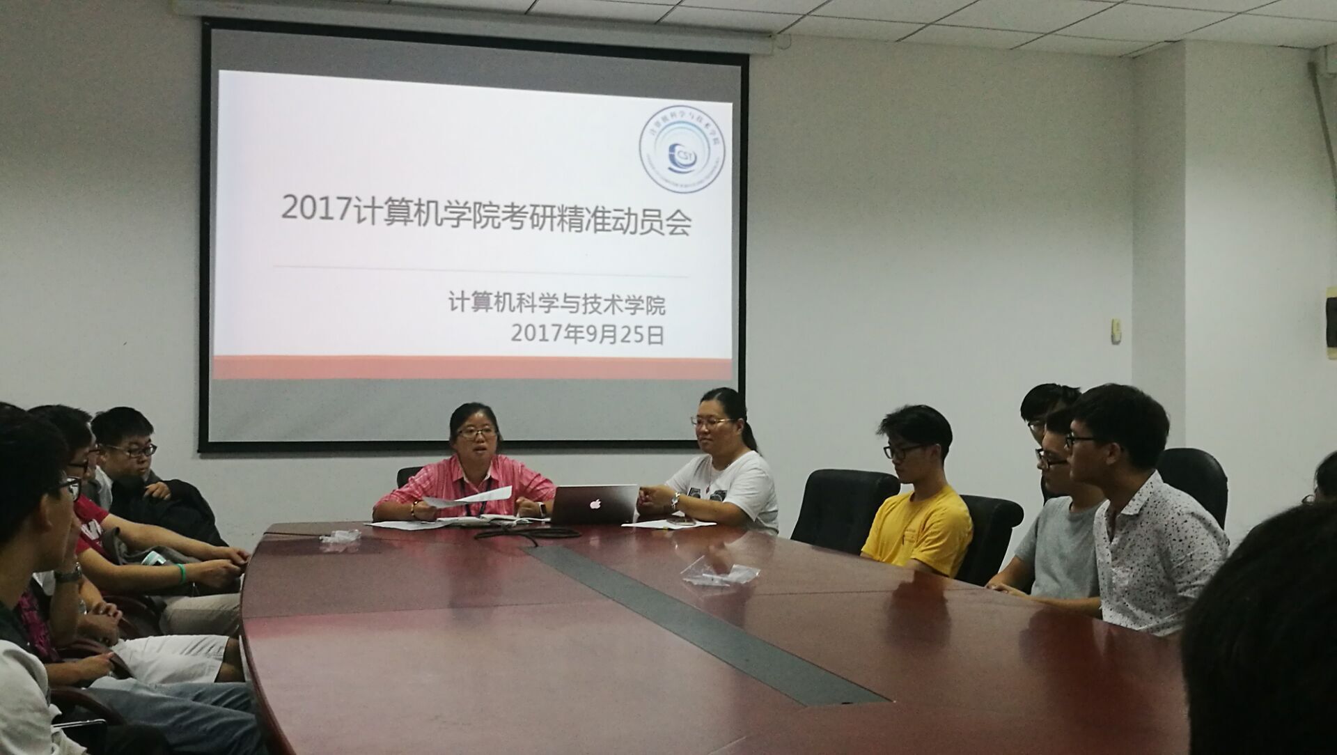 9月25日晚六点,在行政楼209会议室,我院召开了2017计算机学院考研精准动员会,出席本次会议的有我院党委副书记余南飞老师,会议由辅导员吴涵老师主持。