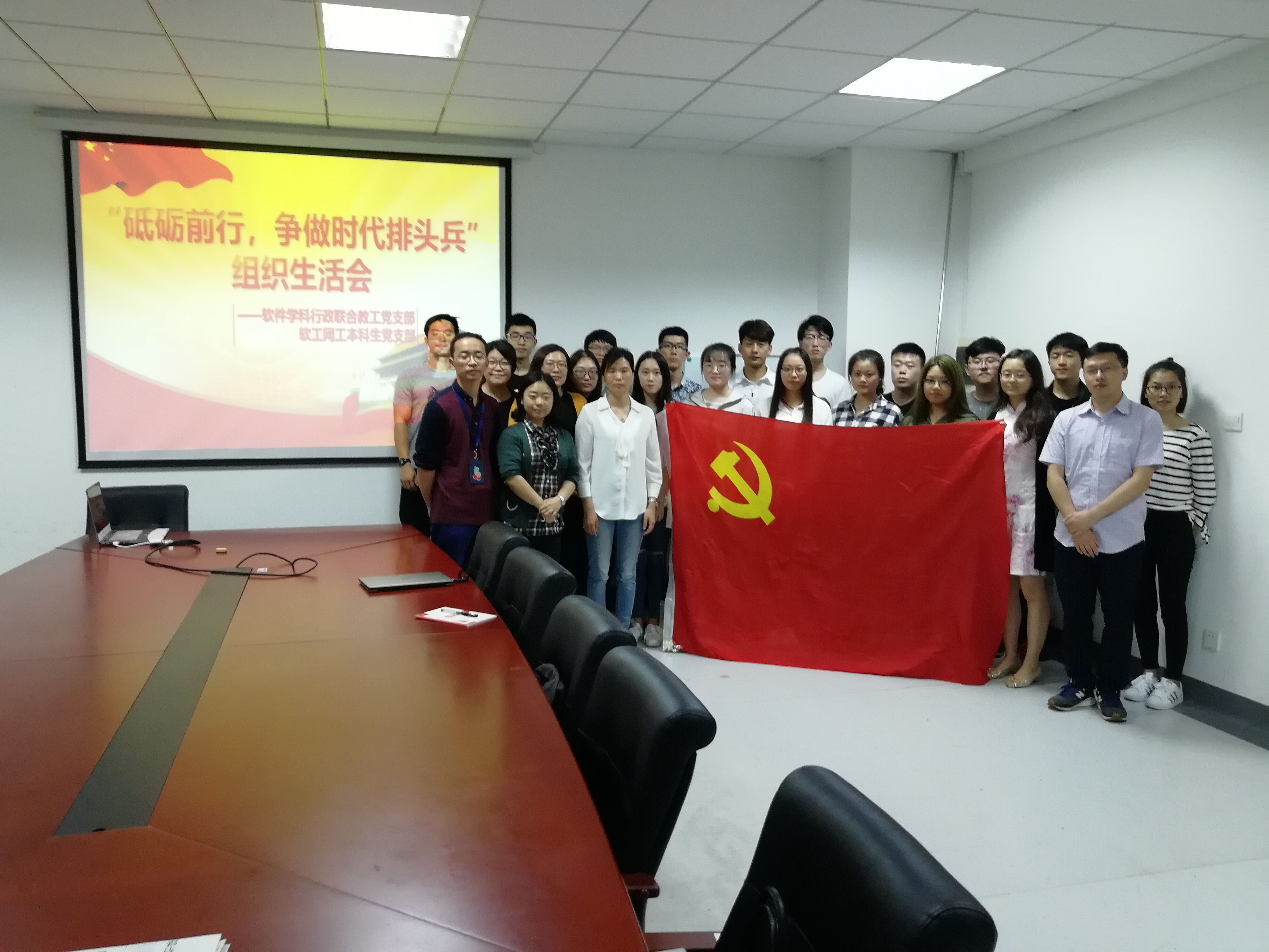 5月22日下午,我院软件学科行政联合教工党支部、软工网工本科生党支部“砥砺前行,争做时代排头兵” 主题组织生活会在学院二楼会议室隆重举行,软件学科行政联合教工党支部以及软工网工本科生党支部的教师及学生党员、十九大精神宣讲团部分成员出席了此次会议。
