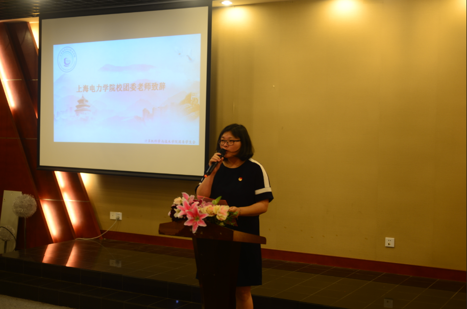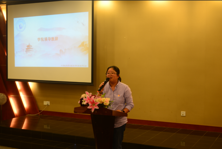 校团委副书记徐仙君老师为大会进行致辞。她代表校团委对我院团学工作的开展与实施表示了肯定与赞扬,并希望新一届团学干部能接过前一届干部手中的责任,再接再厉。