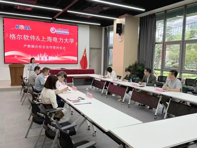 随后,双方就产教融合进行了深入交流,卫杰总经理欢迎致辞,表达了感谢的同时,提出了合作期望,希望双方秉承互惠互利的原则,实现教育和产业的深度融合。魏建华书记详细介绍了学校校史与特色、学校战略与发展、学校定位与规划等情况,从师资力量和人才培养等方面分析了学院计算机相关专业与格尔软件的契合点,表达了与格尔软件建立产教融合愿望。张传林院长详细介绍了计算机学院的发展历程、组织架构、学科与专业体系,与格尔软件就科研教育、课程教学、学分置换、课题项目以及联合实验室建设等进行了交流,达成系列合作意向。齐永晓副书记详细介绍了学院学生情况,就学生人才培养、实习就业等提出可行性建议,希望共同打造高水平就业实习基地。