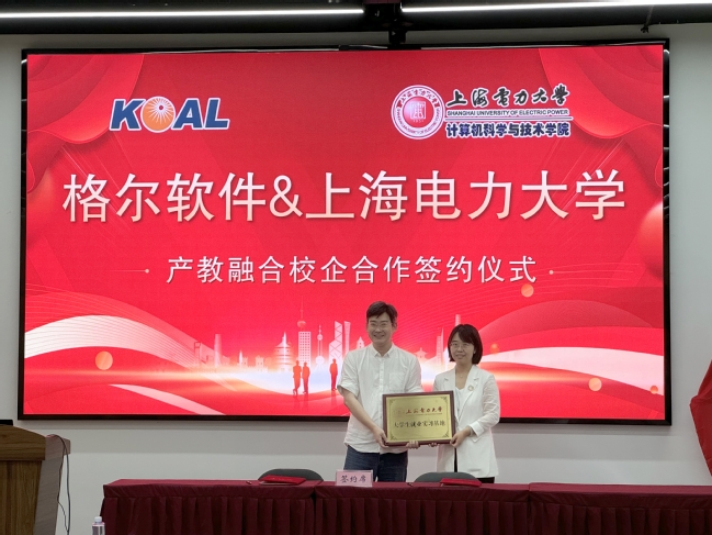 最后,通过与格尔软件交流,双方一致达成合作意向,张传林和卫杰代表双方共同签署了《产教融合校企合作》协议,齐永晓副书记代表学院为格尔软件授牌大学生就业实习基地,安信教培事业部总经理赵斌接收赠牌。本次合作提高了学院产教融合的深度,丰富了学院实践育人的人才培养体系,拓宽了毕业生实习就业渠道。