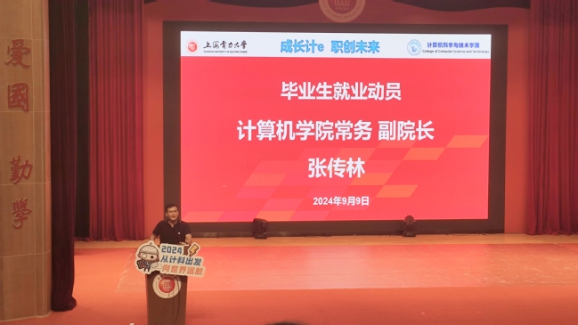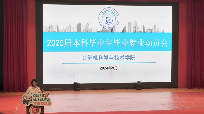 9月9日,计算机学院在临港校区大学生活动中心演艺厅举办2025届毕业生就业毕业动员会。计算机学院党委书记魏建华、常务副院长张传林、党委副书记齐永晓、教学秘书徐曼、科创中心主任李博、辅导员任祥宝、宋钰以及全体毕业生参加。