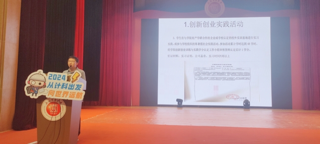 徐曼老师详细介绍了毕业班教学工作安排,着重强调了如何做好学业管理,关注学分和绩点是否符合毕业相关要求;提醒同学们注意毕业设计的要求,关注毕业设计系统及教务系统的选课,要保持与老师之间的联系,处理好毕业设计与实习的关系。李博老师对创新创业训练与实践学分认定进行了详细解读,分别从创新创业实践活动、学科竞赛、创新创业训练计划项目、创业实践和学术论文及专利等类别进行了详细讲解,让学生对双创学分的申请有了更加清晰的认知。