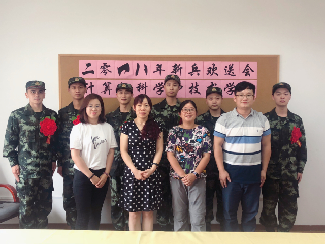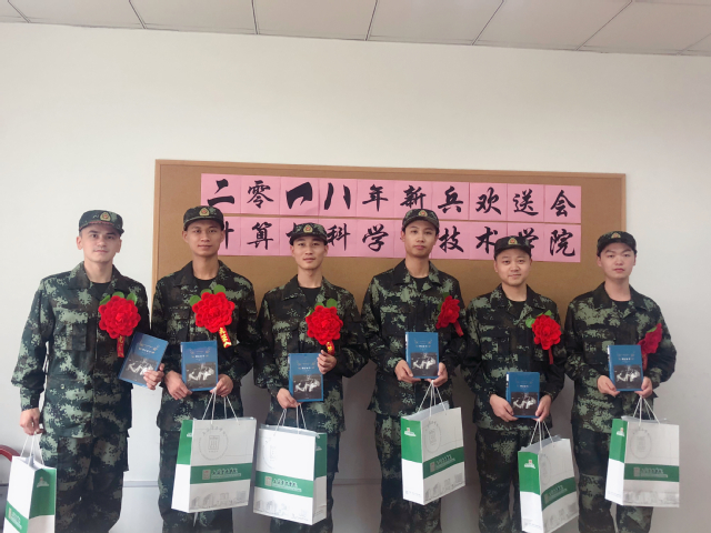9月18日下午,红宝石9999hbs在杨浦校区奋进楼401会议室举办了新兵入伍欢送会。我院分党委书记费敏、副书记余南飞、辅导员朱佳、任祥宝以及全体新兵同学参加。