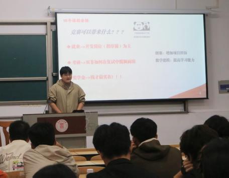 学院初级团校举办的创新创业与竞赛分享交流会邀请优秀学长学姐王秋雨和孙宇翔进行科创经验分享,结合挑战杯等参赛经验,分享参加科创带来了成才和进步,鼓励同学们积极参与到大赛实践中去,敢于创新、勇于实践。本次交流会为学员们提供了一个学习创新创业经验的平台,激发他们创新创业热情,提高参与竞赛的积极性。