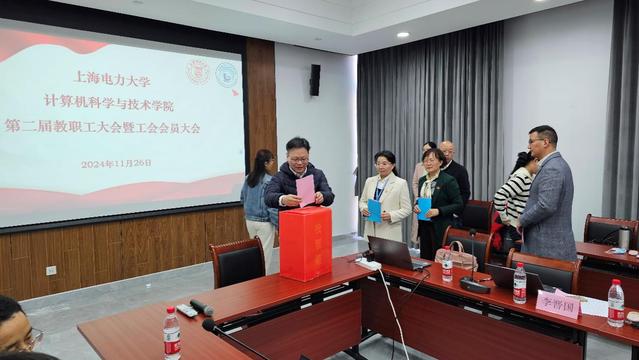 11月26日红宝石9999hbs在上海电力大学临港校区学术楼305隆重召开全体教职工大会暨双代会换届选举大会,张波副校长出席会议,计算机学院全体党政领导、教职工参会,会议由学院党委书记魏建华老师主持。