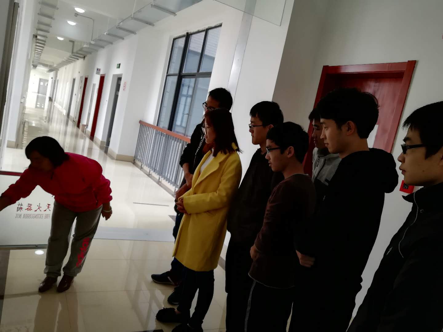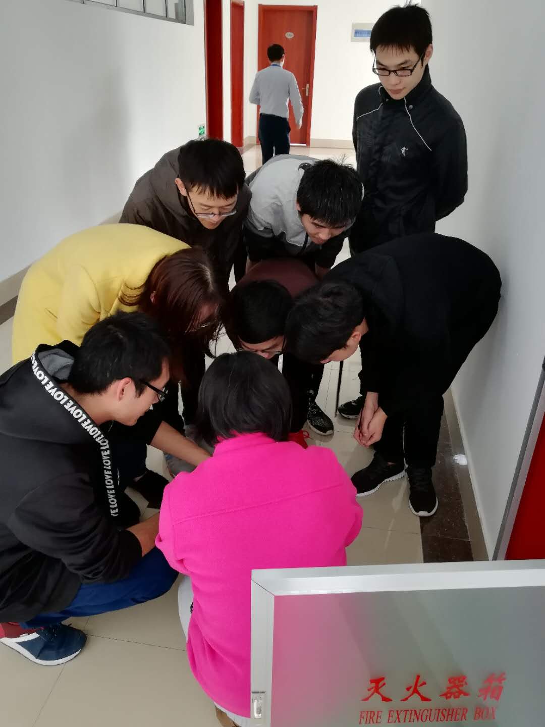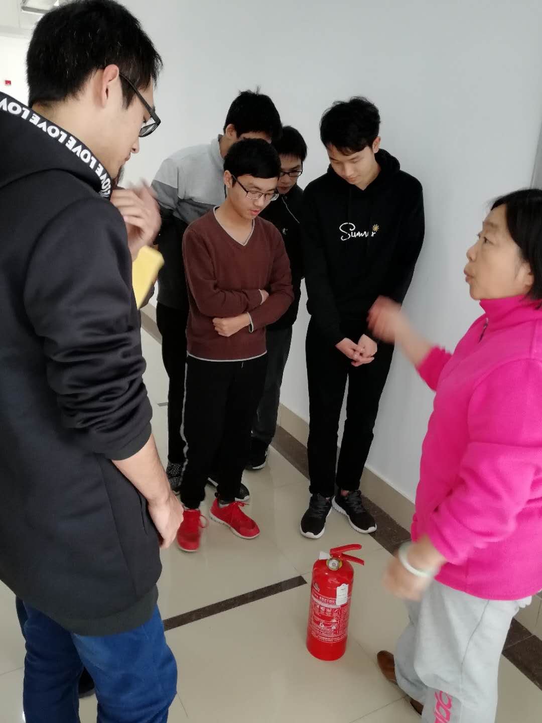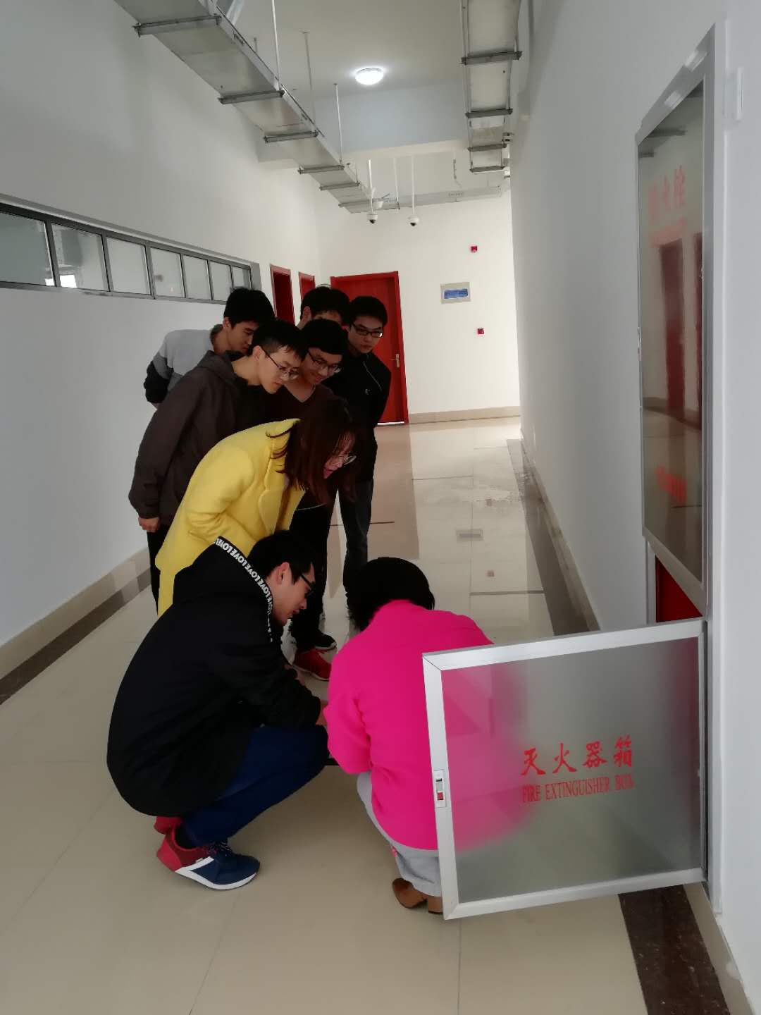 开学初,有实验中心主任徐老师对实验室助理进行安全培训,主要是针对灭火器的使用:1、让实验室助理知道每层楼消防器材的放置位置。2、介绍两种消防器材:水灭火器和干粉灭火器,我们中心都是电气设备不使用水灭火器。3、重点介绍了干粉灭火器的使用,做到让每位同学都学会使用。